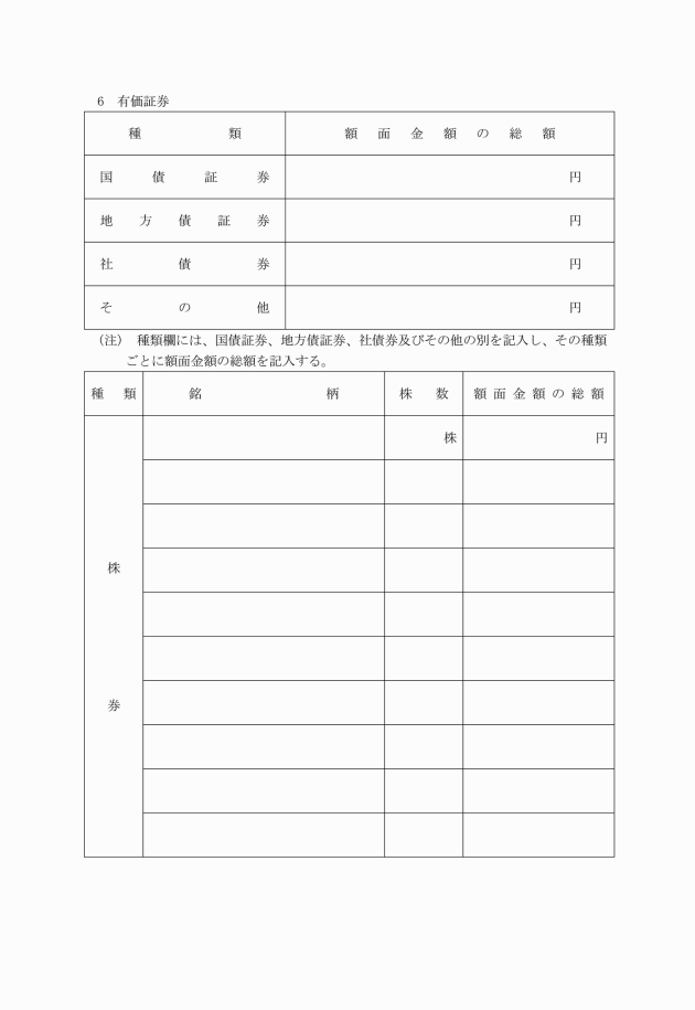 第2条 条例第2条第1項第6号の有価証券の種類は、国債証券、地方債証券、社債券、株券及びその他とする。