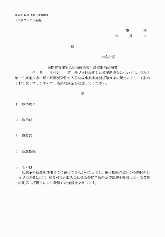 ○令和2年7月豪雨災害に係る民間賃貸住宅入居助成事業実施要項