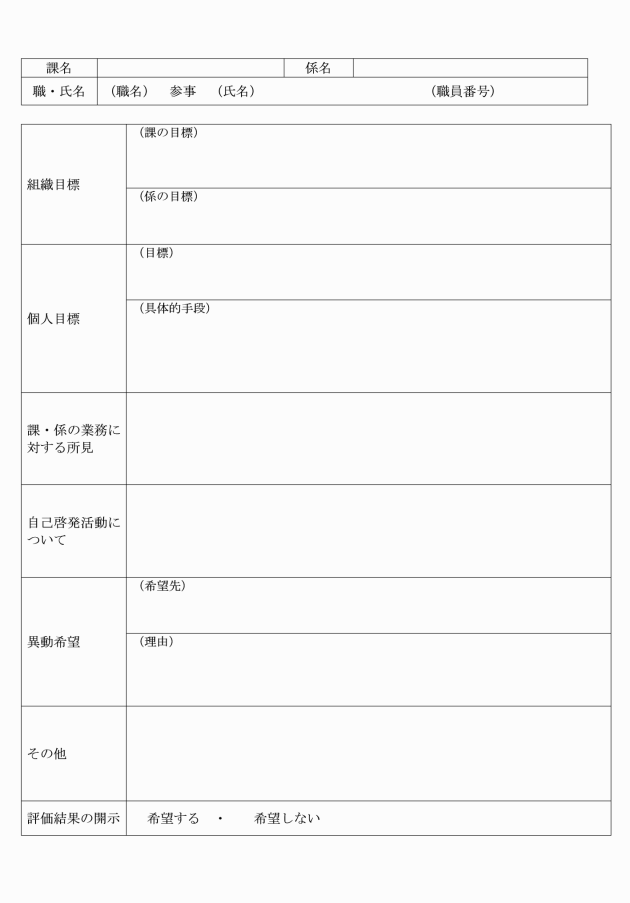 (4) 「課の目標」及び「係の目標」の欄は、それぞれの課、係で決定した目標を記載する。